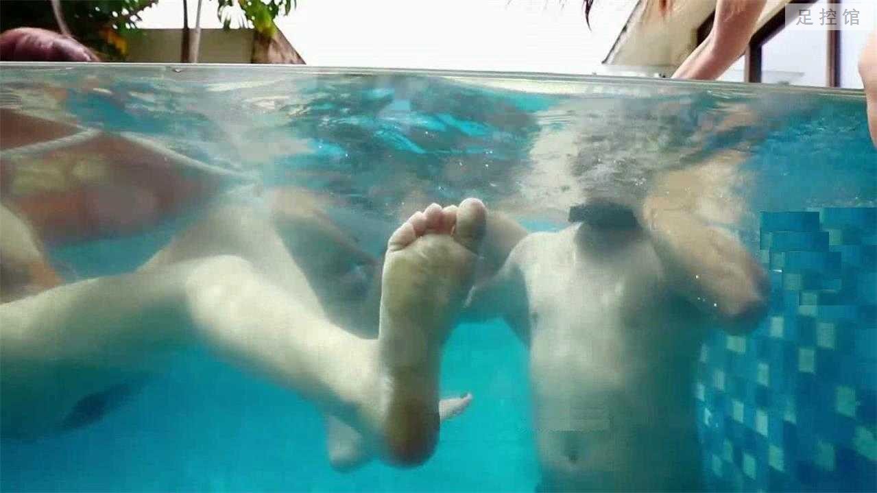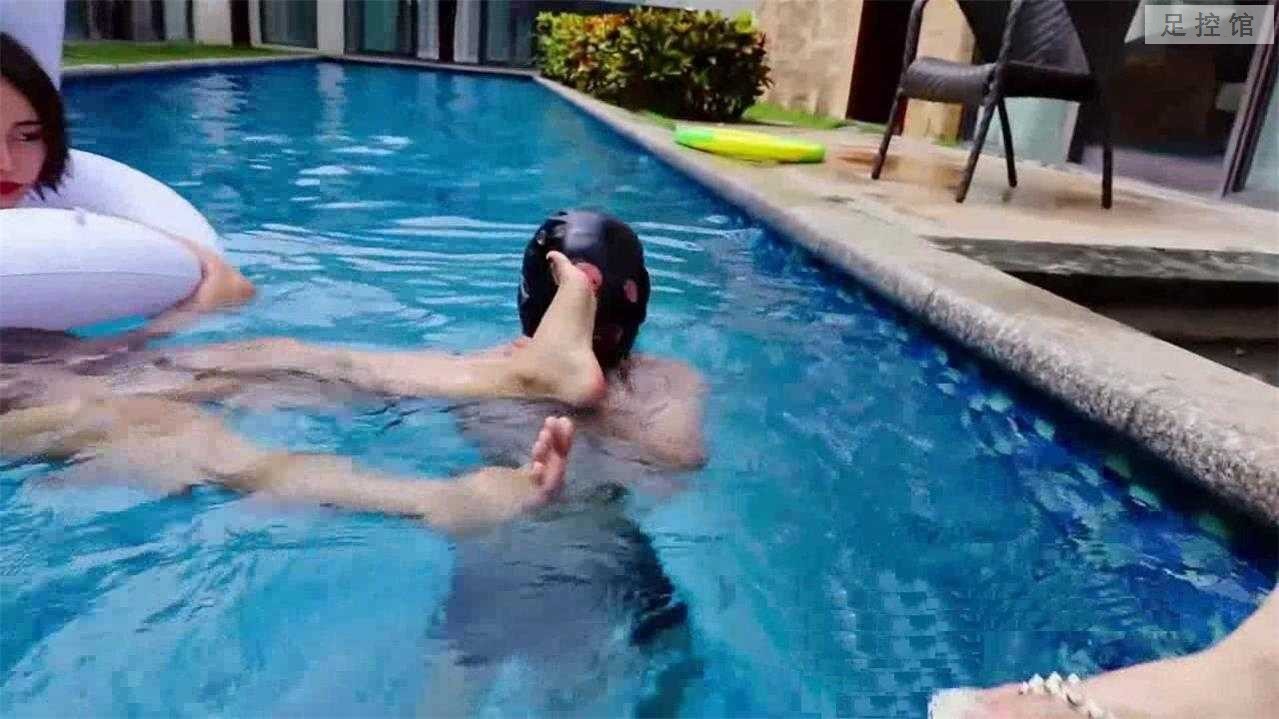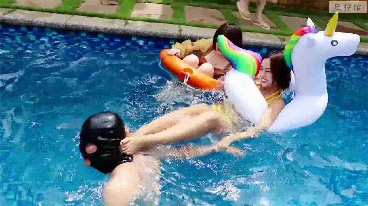 泳衣假期 游泳池人字拖玉足踩脸天脚
