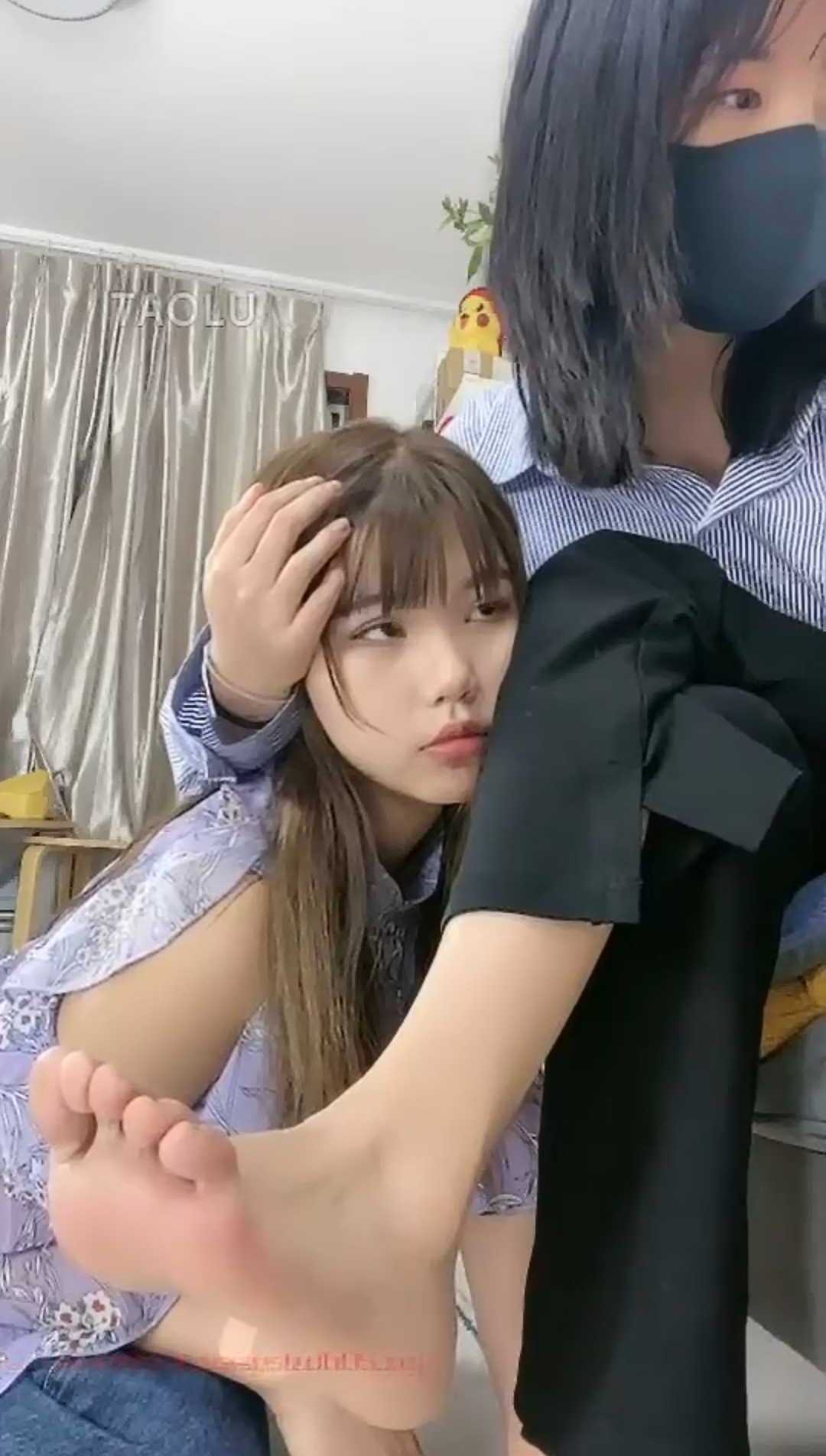情景剧两个女孩为了减压把丝袜臭脚给人舔食