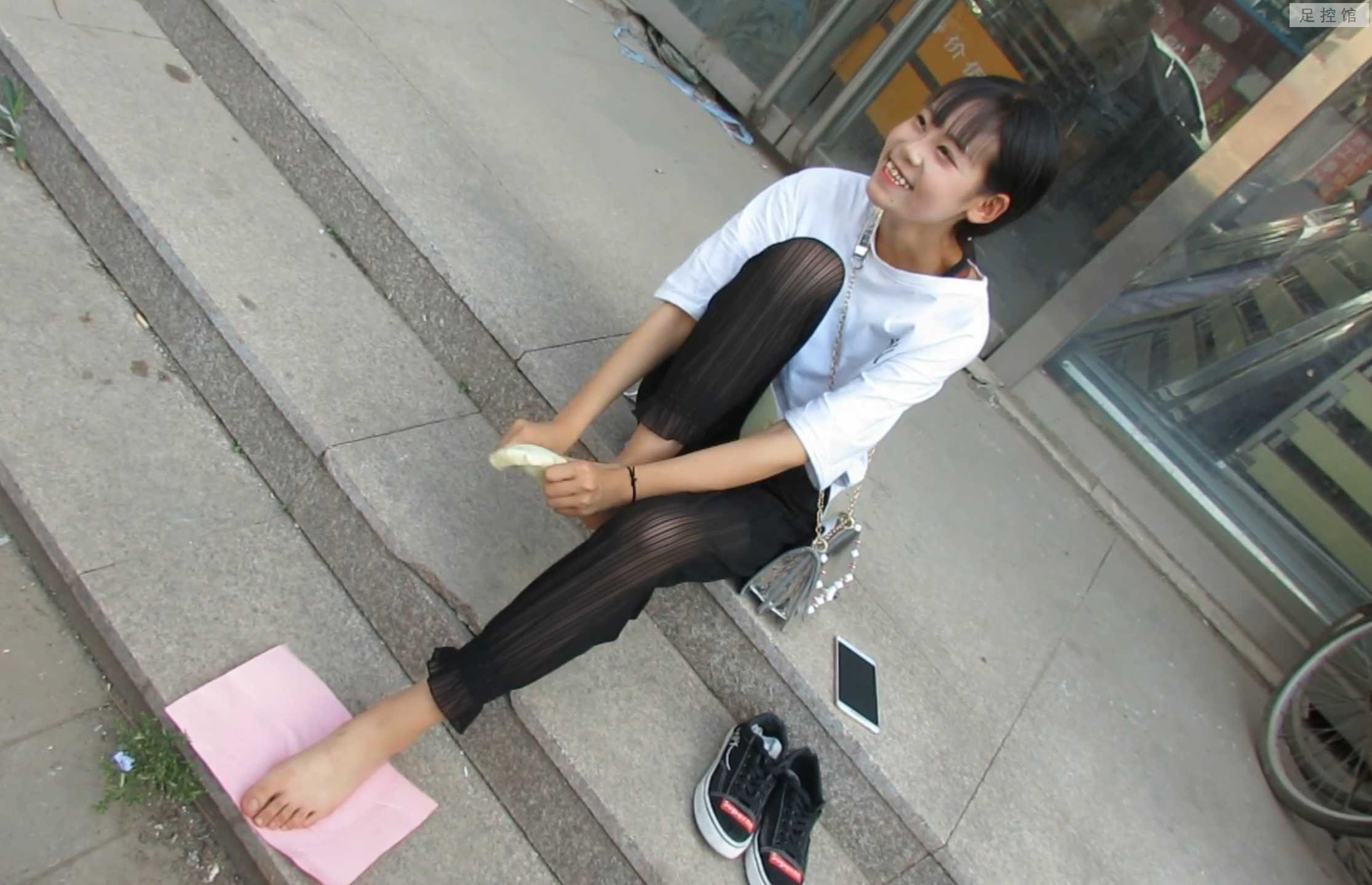 【真实】街上忽悠时尚小姐姐拍她出汗湿透的船袜 她很害羞